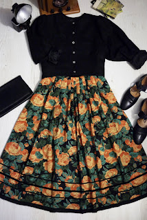 Fusta retro in nuante puternice: verde/negru/oranj/bej, se inchide cu fermoar si nasture intr-o parte, are 2 buzunare laterale ascunse, este captusita, in talie are bata din catifea neagra, la fel si la poale are cateva accente de catifea, este foarte ampla. Pentru un look deosebit, romantic, de primavara. Cu o floare nu se face primavara, dar cu o fusta ca aceasta, DA!